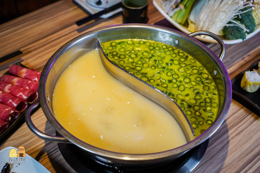美個看起來都是風味很豐富,波記私宅打邊爐都是鴛鴦鍋可以選擇兩種口味,我們這次選擇『青醬椒麻』『黃金酸湯泡菜』