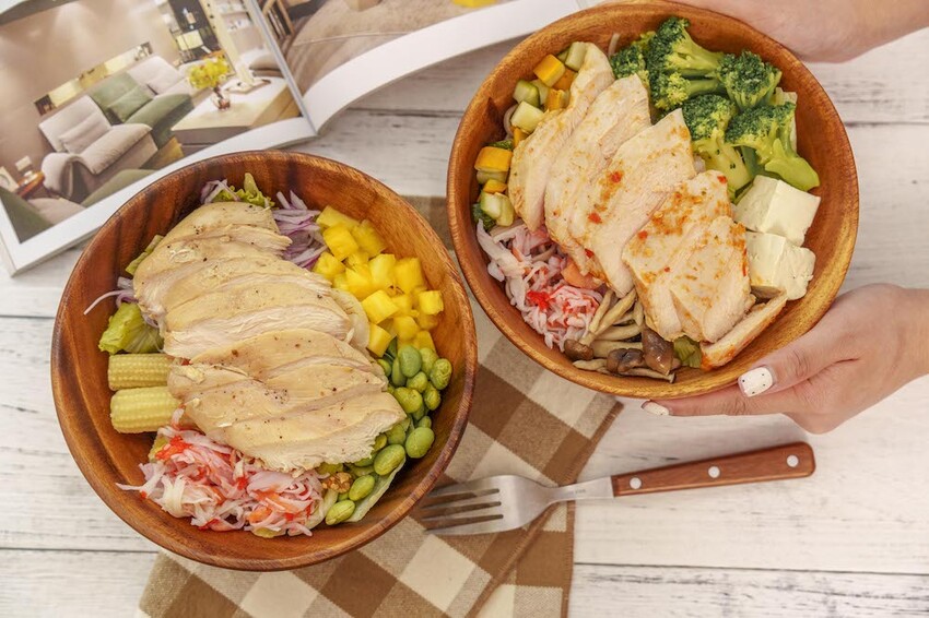 推薦這道泰式酸辣舒肥雞胸,酸酸辣辣的口感超級開胃!核桃木冷燻舒肥雞胸則是使用冷燻手法將核桃木的自然香氣及肉汁鎖在雞胸肉裡,吃起來軟嫩順口~