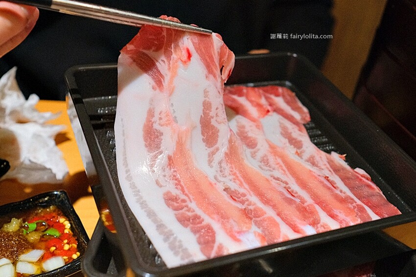 這個牛胸腹以「饗和牛鍋物放題」的和牛來說,油脂算介於中間部位,不會全是瘦肉,但又帶了一點點油脂,不管是單吃亦或沾醬都很出色。
