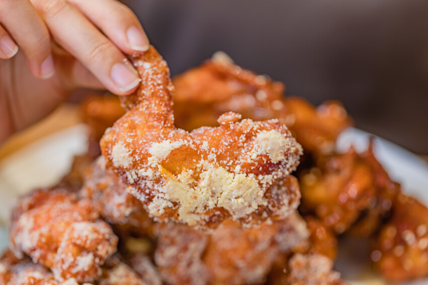 ▲有別於以往的起司炸雞,竟然不是牽絲的起司呢!店家嚴選使用了三種起司,因此那濃郁的起司香可以說是大爆棚啊,加上炸雞的溫度讓起司香是更加濃郁,起司粉給你灑好灑滿,光拿起炸雞就能感受到那薄脆的外皮,每口咬下都不會覺得麵衣過於厚重,是恰到好處的比例,香嫩的雞肉和濃郁起司的融合,是可以撫慰我身心靈的炸雞啊~這一個口味是我心中的第一呢!