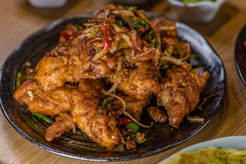 ▲▼說到韓國料理怎麼能夠沒有炸雞呢~這餐點一上桌可以說是辛香味大爆發啊~