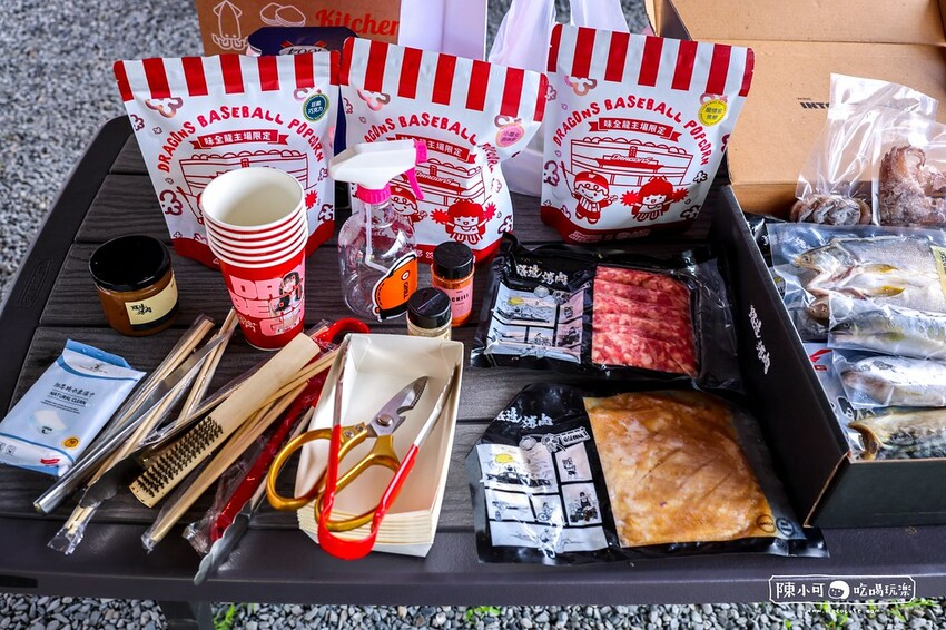 即將打開這盒像是小叮噹口袋的燒烤組合,我們是預訂「龍焰燒烤席」的狂龍海陸特盛,官網提到的食材看起來不多,來到現場發現食材根本超多,懷疑是小編懶得打字(喂)。