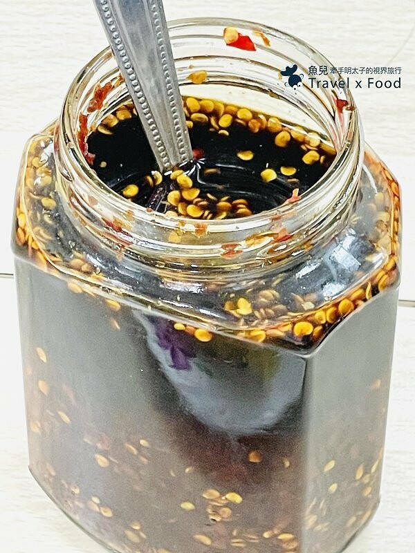 內用客人一定會看到桌上這瓶辣椒醬油,除非你吃大辣,否則在嘗試前先沾一瞇瞇就好,