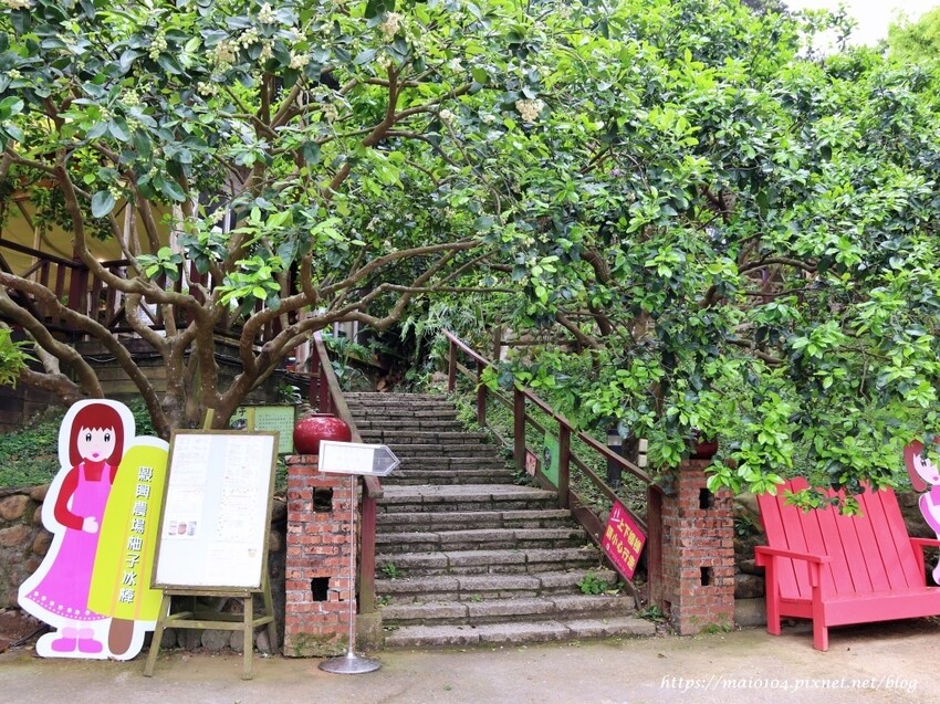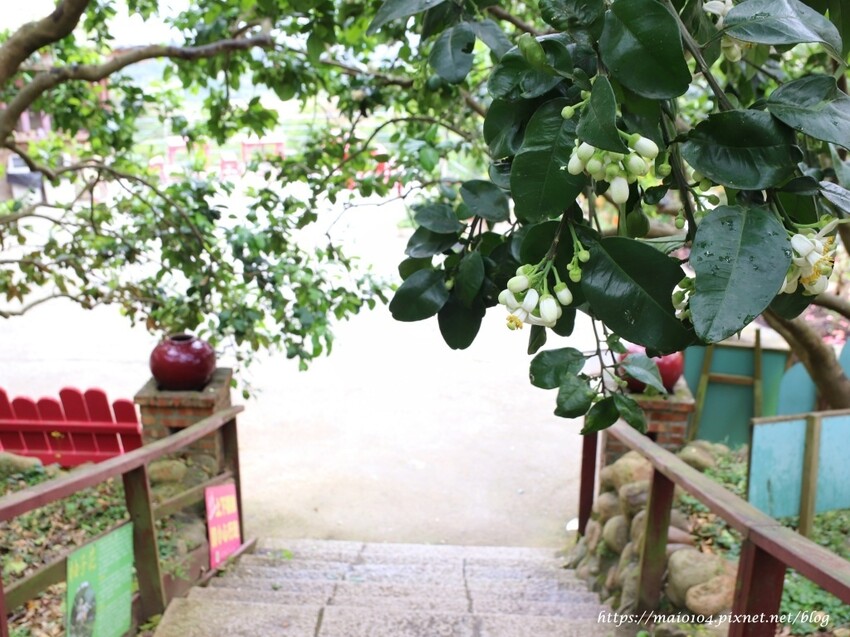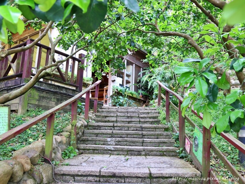 到達餐廳要先走上這些階梯,階梯上方被柚子樹營造出綠色隧道的氛圍