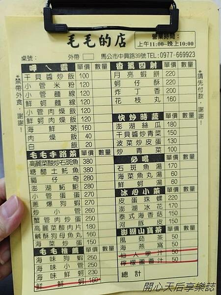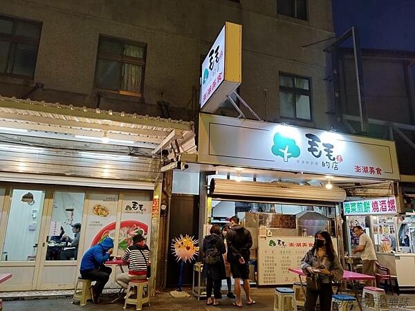 伙伴說到澎湖必吃小管麵線,晚餐來到毛毛的店,有戶外座位區,但因戶外風大,我們坐在店裏吃