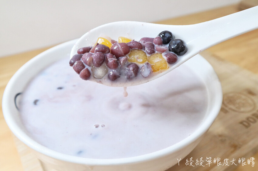 湯底選用屏東萬丹紅豆,不但鋪了滿滿的小芋圓跟地瓜圓,還有冬瓜白玉粉圓,看起來繽紛極啦!