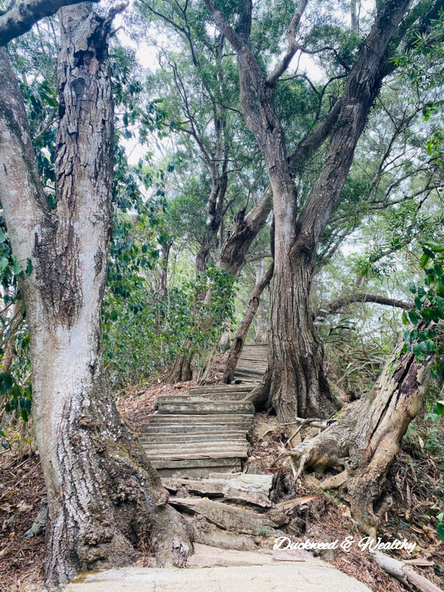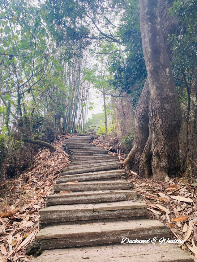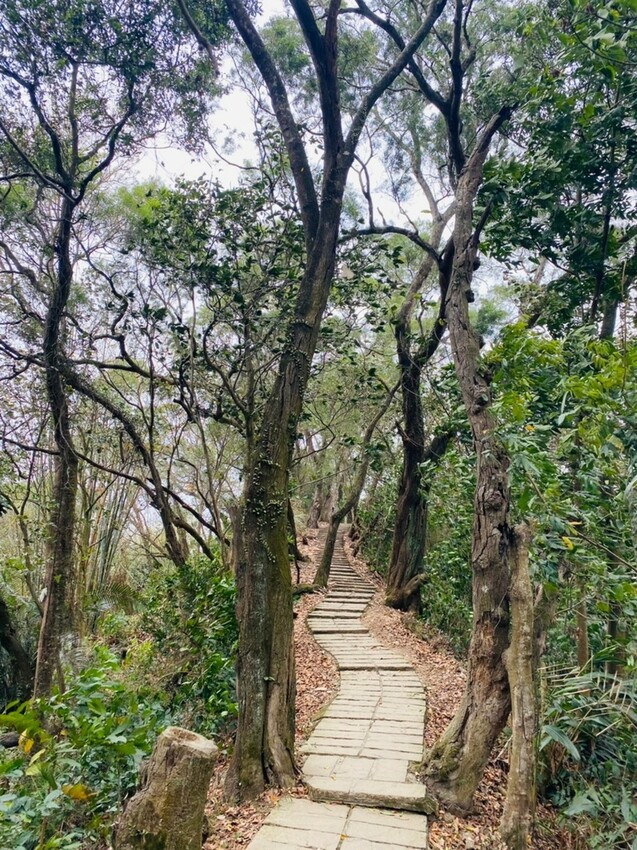 「荷苞山登山步道」水泥石板步道被樹木群都被樹根穿過突起須小心