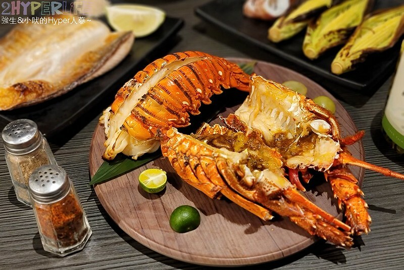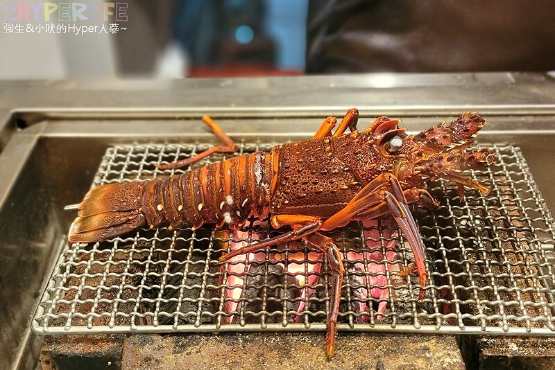 最後主角終於給他出場啦!水族箱內的最後一隻龍蝦就是給我們享用囉!該處理的地方都處理完畢,用炭火直接把最新鮮的地方烤熟鎖住水份肉質也太棒