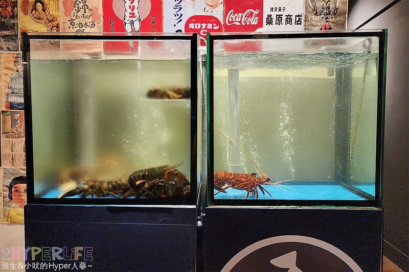 室內水族箱,大家都很厲害右邊的龍蝦幾乎完售,最後一隻龍蝦…絕對要吃到呀!哈哈