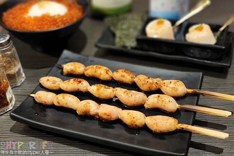 這個台中難得可以吃的到的水果肉串真的要點起來!一般豬五花都是包番茄,初海食堂竟然包的是綠葡萄(高成本)、柑橘和紅毛丹+鳯梨等三種不同水果組合,真的吃起來很解膩也很特別