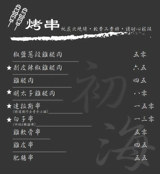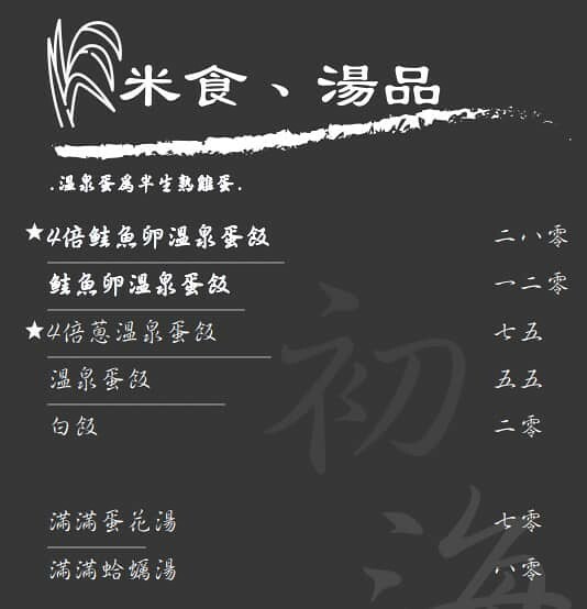 最後附上初海食堂的菜單,價位上也都很歐虧~
