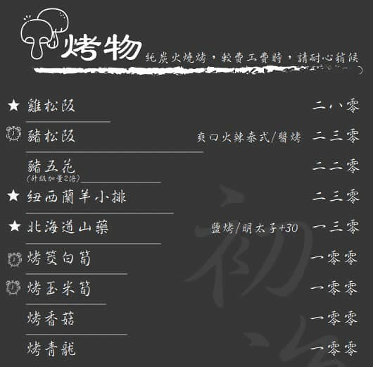 烤香菇 100元