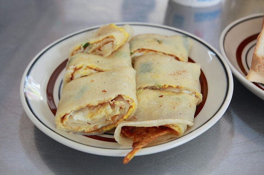 這蛋餅表面煎得沒有很焦黃恰到好處。
