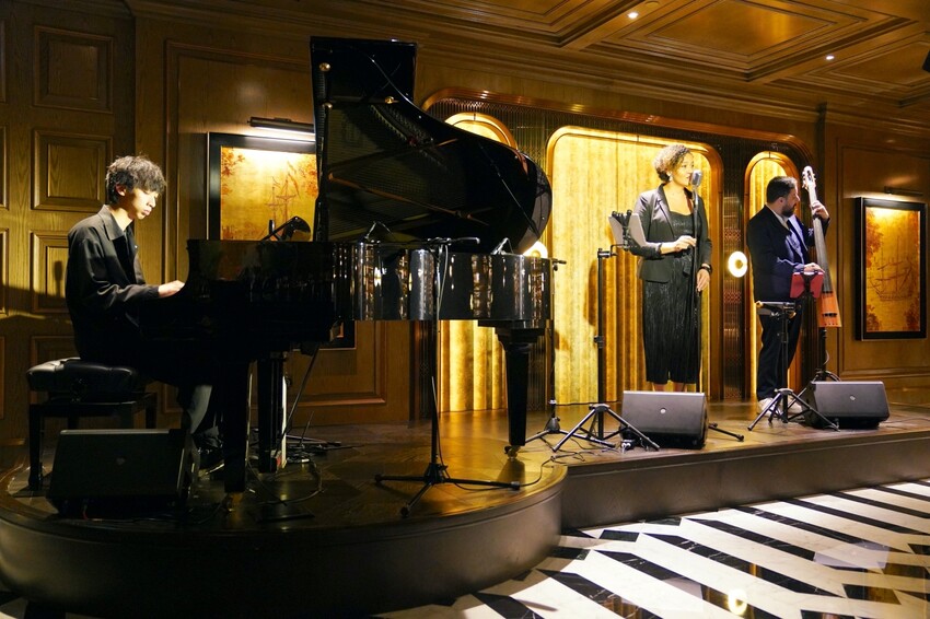 ▼瑞吉酒吧幾乎每晚都有駐場的爵士樂歌手及樂手現場演出經典爵士樂曲,時段大約在 晚上六點至九點半,每個月都會公佈當月演出時段與表演人員在酒吧門口。