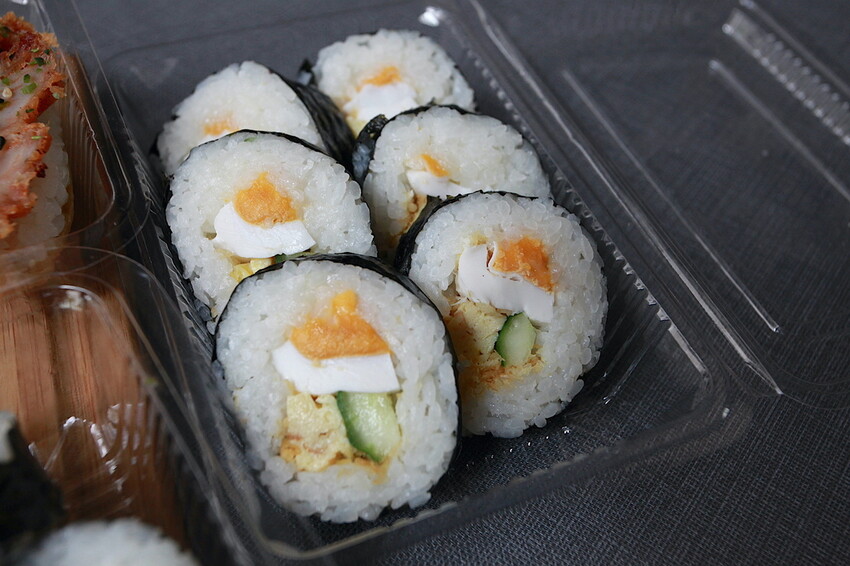 這是壽司是基本款裡面有肉鬆、玉子、小黃瓜及素食料等,這壽司滿滿肉鬆米飯軟Q真好吃