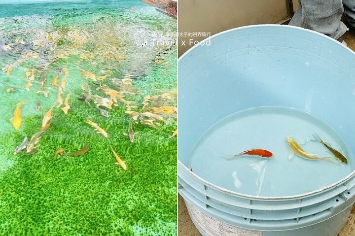 我們正好看到老闆替客人撈魚的畫面,小鯉魚們被照顧的很好,顏色漂亮,難怪要價不斐。
