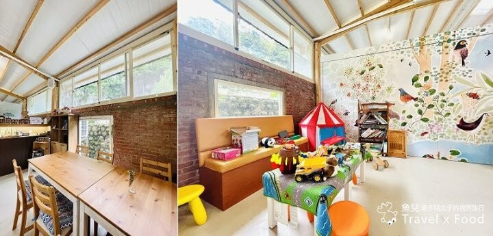 餐廳角落是兒童遊戲室,遊具不少,但我家己是大孩子了,外頭的多肉更吸引他。