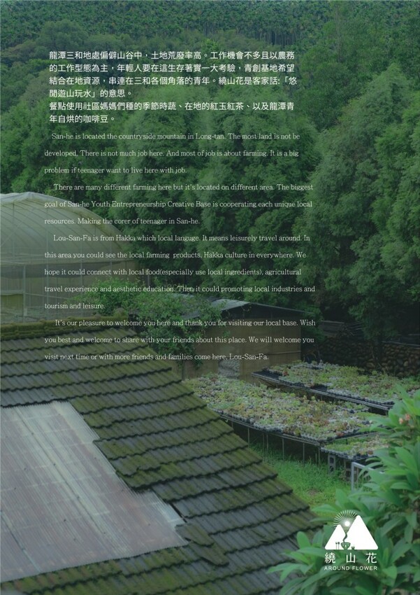 位於桃園龍潭的繞山花(三禾青創基地),有餐飲、手作、多肉DIY,隔壁還有免費參觀的錦鯉園,