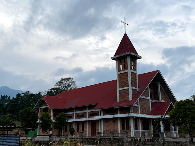 一路上仍看到許多大屋頂牛角狀的建築。