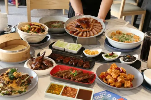 套餐內含片皮烤鴨牛隻、配品(含荷葉餅6片、蔥段、大黃瓜絲、甜麵醬、季節蘸水)、一道開胃菜、功夫鴨三寳拼盤(鴨翅、鴨胗、鴨腸)、兩道主菜、兩杯飲料。如需將鴨架煮粥或是炒成料理需加價150元。