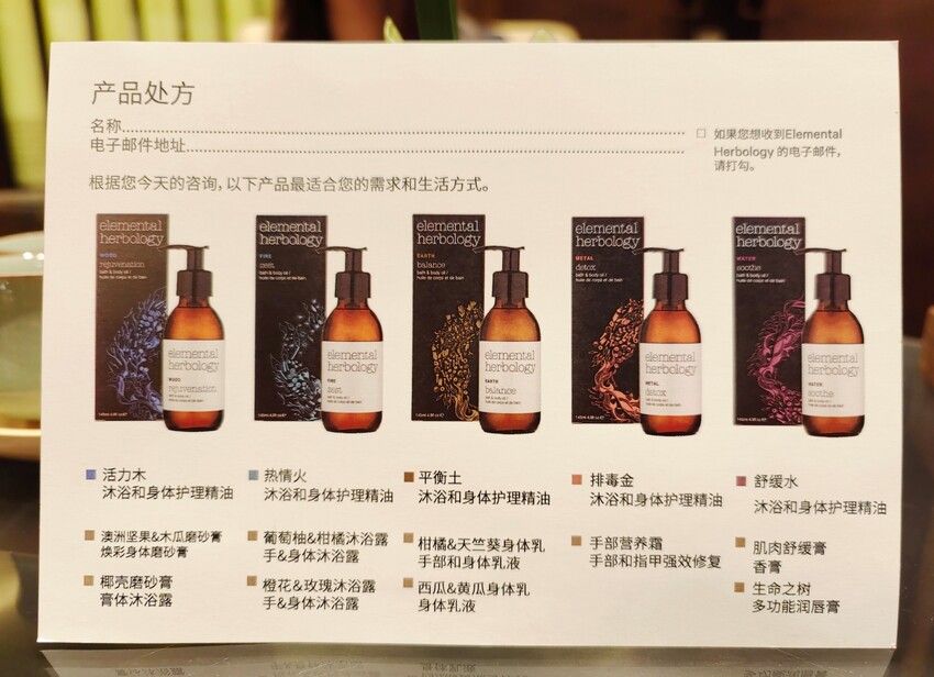 ▼炫逸水療糅合中西傳統技術,以木、火、土、金、水五行元素為靈感,提供水療護理,木、火、土、金、水都有各自對應的產品,喜歡可選購。
