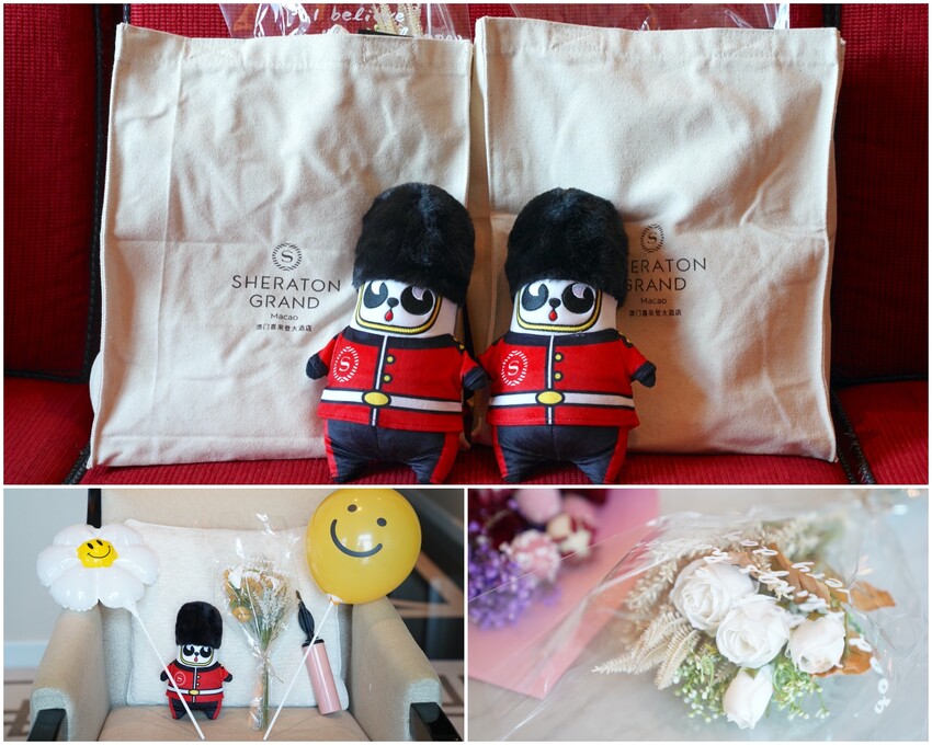 ▼若預定「喜來登探索之旅」專案,專案內容會有用帆布袋裝的打卡禮包,禮包內有 Q 版禁衛軍玩偶、人造花束、兩款氣球,連打氣工具也都附上,不用吹到臉紅脖子粗,讓網美優雅打卡。