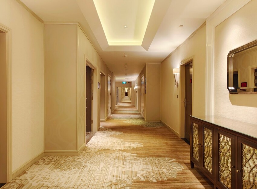 ▼入住的豪華套房在 41 樓,需搭電梯從 40 樓轉乘到 41 樓,一開始走會感到很遙遠且擔心迷路,其實走兩三趟就習慣了。房間數多,所以長廊盡頭很遠。