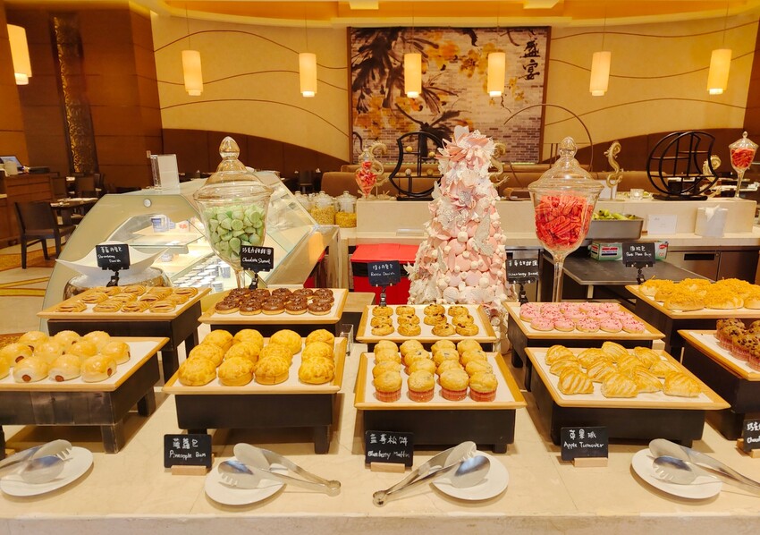 ▼盛宴自助餐廳的早餐在 Google 評論有很多好評,大部分是種類豐富、口味不錯。如果你喜歡甜點、冰淇淋、麵包,會吃得很開心。我個人推薦草莓與香草冰淇淋、蒸餃、現燙河粉、蜂巢、麵包布丁。同行朋友跳耀的宅男說鴨皮粥美味。