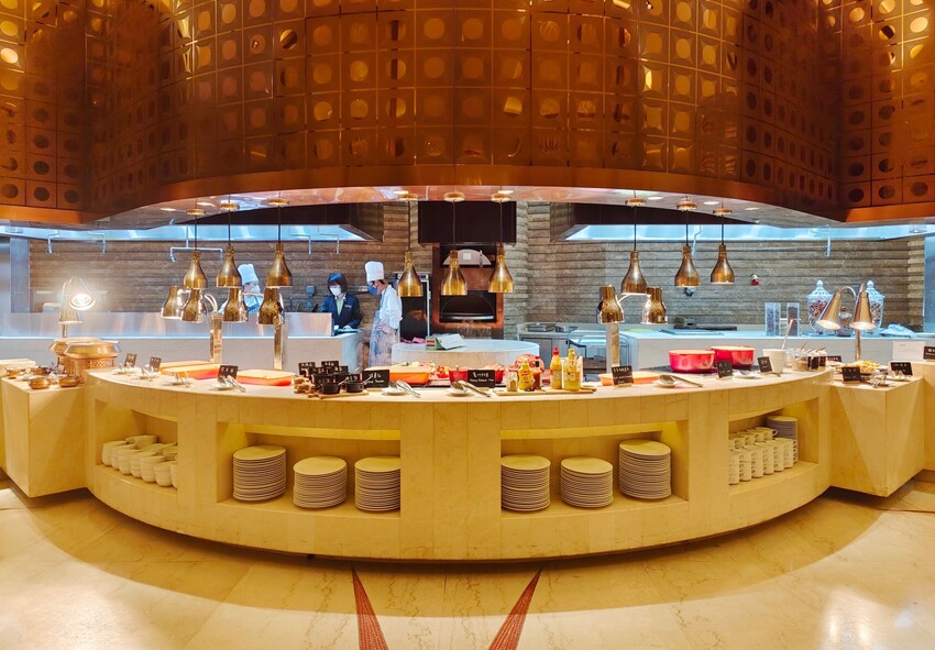 ▼另一區在當時下午是未開放的狀態,往前看到最盡頭有取餐檯,應該是供行政樓層客人使用早餐的取餐區與用餐區,但我們這次的早餐是劃在盛宴餐廳,可能是疫情時有變更,或因應住客多寡所做的調整。