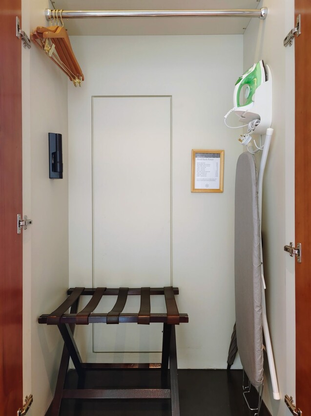 ▼衣櫥有兩個,另一個同樣在比較大的衛浴間。衣櫥內有熨斗、燙衣板、行李架。