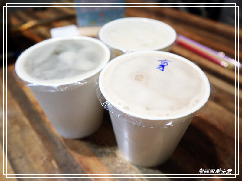 飲料點了熱拿鐵/美式咖啡/豆漿,這裡是傳統一般的紙杯裝,而不是內用杯,用吸管喝起熱咖啡來稍稍有點沒FU😆。