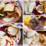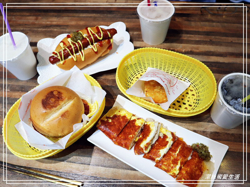 今天的早餐:脆皮乳酪鮪魚蛋餅/德式大享堡餐/花醬厚牛培根歐姆堡/豆漿/熱美式/拿鐵。
