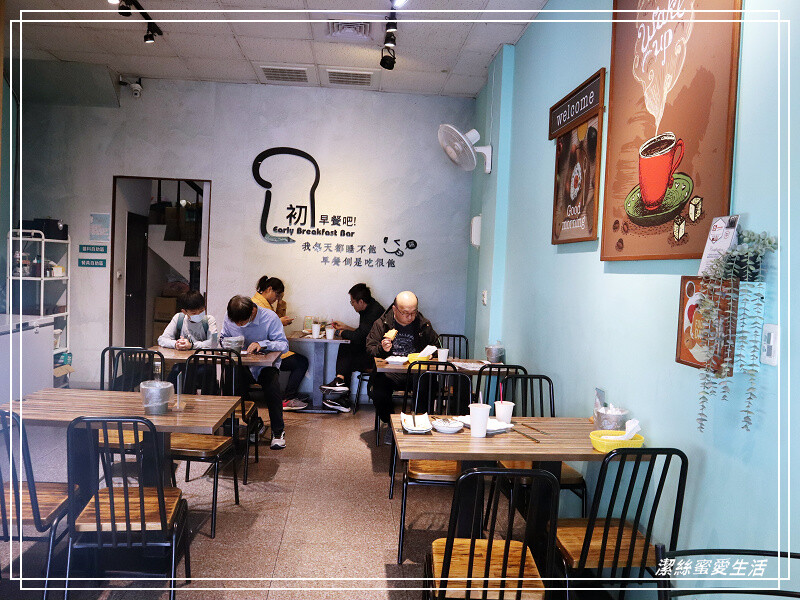 初早餐吧位在大溪埔頂路上,外觀是可愛的藍色小清新色系,我們連假怕塞車早早就出發,店內客人還不多,寧靜悠閒。