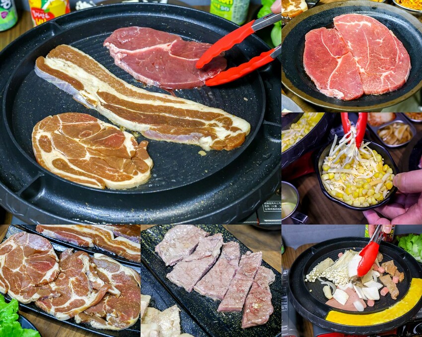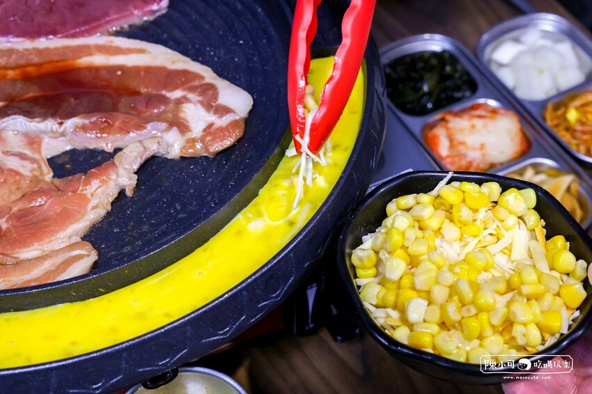 兩人份500元可選兩種肉品,三人份有三種肉品更豐富,平均一個人兩百多元就能吃到精選菜盤組、起司玉米、特製烤蛋、生菜(可續一次)和白飯、小菜吃到飽,真的超豐盛!當晚看到其他桌客人幾乎都點這個最多。