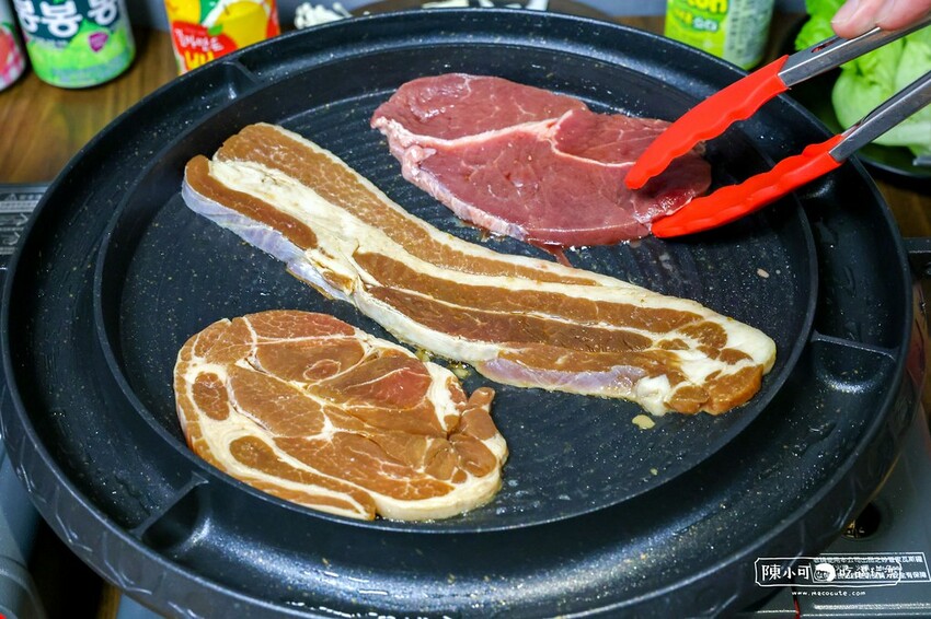 三人份的肉品有嚴選厚片牛排、水梨秘醬醃厚片豬五花和水梨秘醬醃厚豬梅花三種。