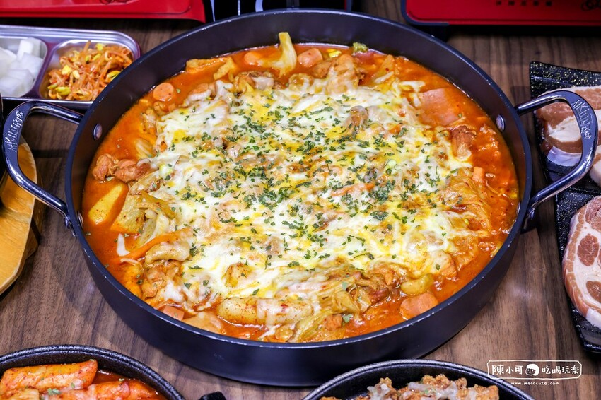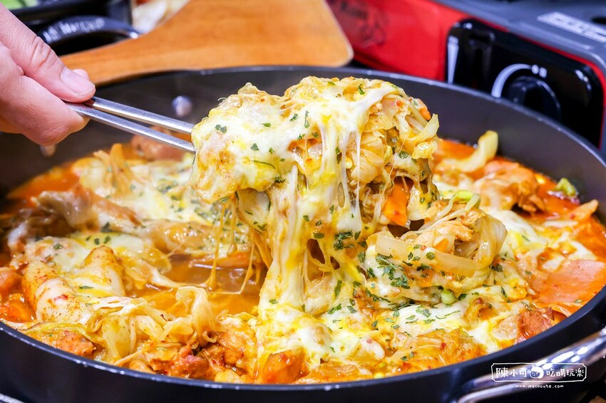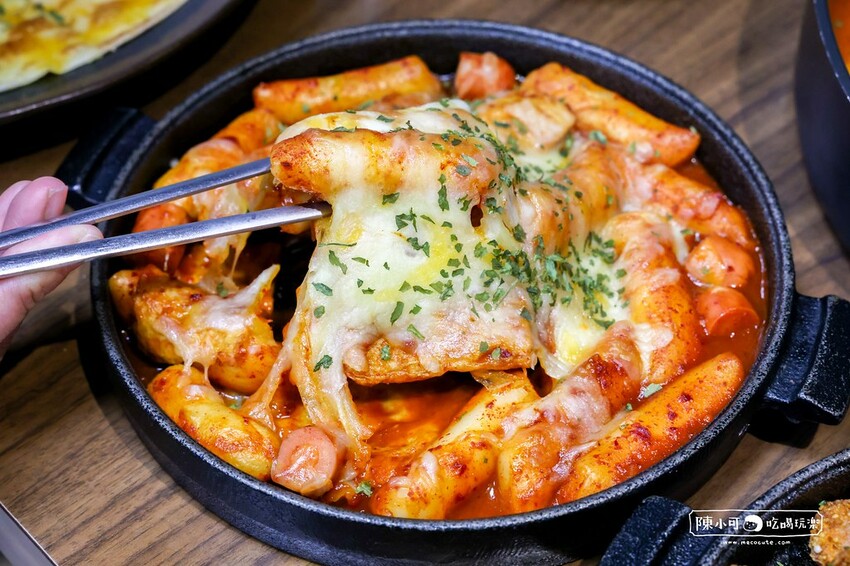 裡面有紅蘿蔔、洋蔥、韓國年糕、雞肉和韓國魚板等配料,重口味的韓式料理,中辣帶點甜的滋味,雞肉口感鮮嫩入味,加上滿滿起司超濃郁,起司控絕對會喜歡的推薦。