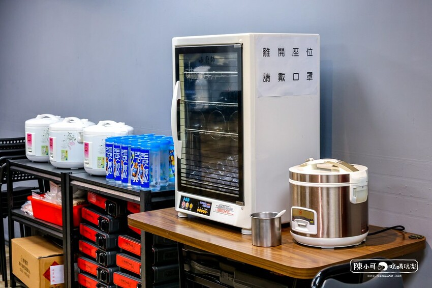 內用點套餐提供白飯吃到飽,旁邊有開水和餐具可以自取。