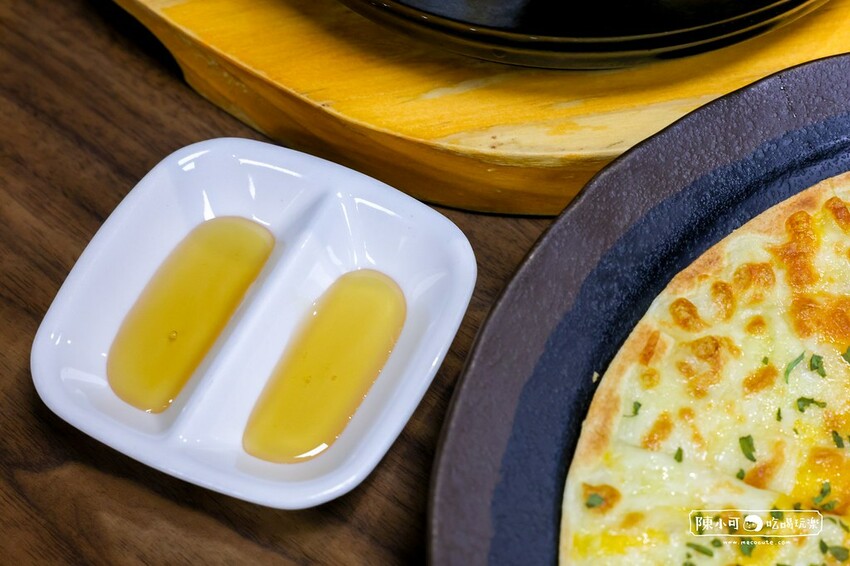 這裡的披薩是薄片,軟嫩鹹香,可以單吃或沾蜂蜜搭配,起司味道濃厚。