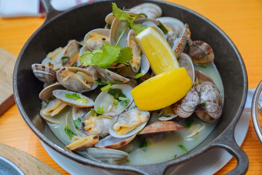 所謂的蜆就是我們的蛤蜊,使用花蛤利用白酒烹煮後