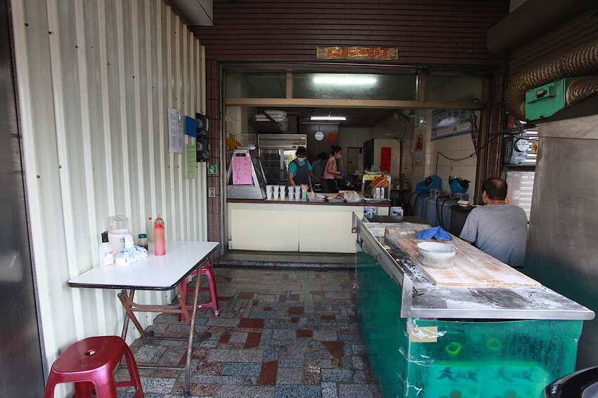 騎樓僅放置一張桌子供顧客坐下來用餐,一旁有製作燒餅的工作台很吸睛。