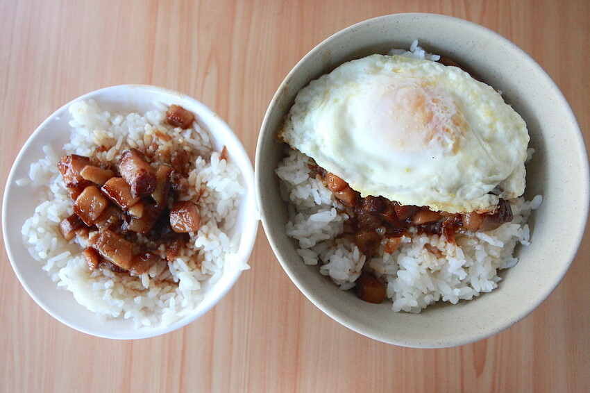 這碗肉燥飯米飯是煮的比較軟爛些,這肉燥使用帶皮肥肉下去滷製,肉燥鹹香甘甜與白飯一起超好吃