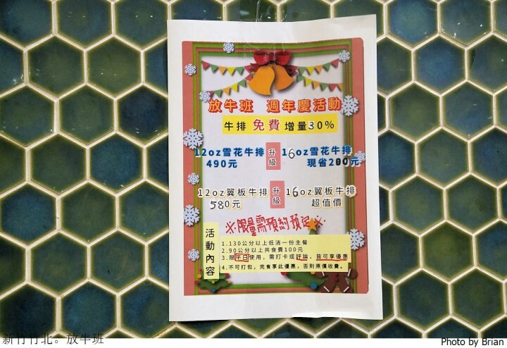 除了菜單中的選擇之外,它們還有不同的優惠活動。像現在的周年慶活動,牛排免費增量 30%,原本 12Oz 的牛排不用加價,就可以變成 16Oz,對於愛吃牛的大家,這個超棒啊!!