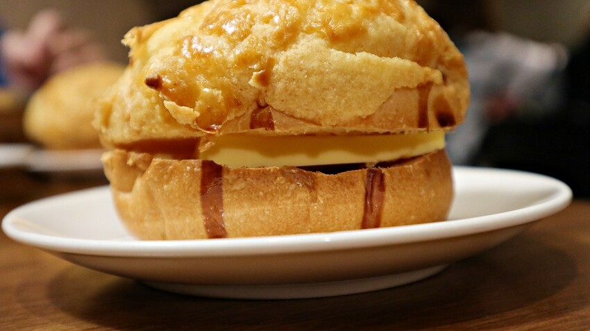 熱熱的菠蘿包裡包著冰涼的奶油,奶油溶化後讓菠蘿包吃起來更加濃郁美味。