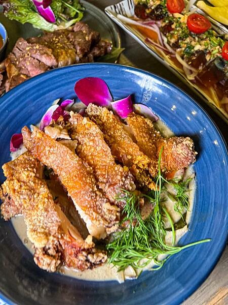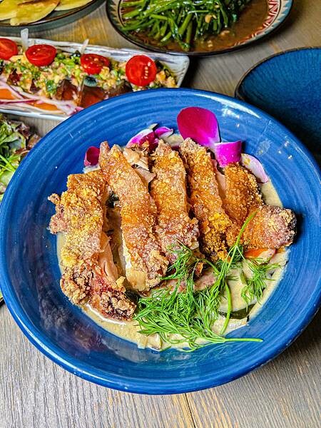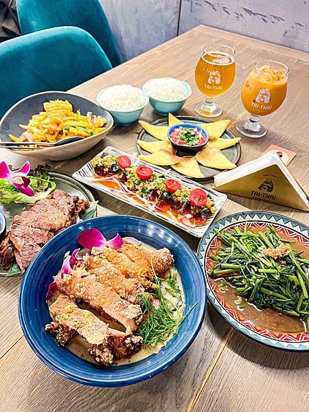時尚裝潢超好拍很適合網美好友閨蜜等聚餐~店門口風格就很吸睛設計新穎,一進店內有進入泰式皇宮的feel,桌椅的設計真的很時尚特別,而且舒適乾淨重點是餐點也很厲害餐酒館很少見主推泰式料理,他們家餐點不僅好吃也有特色~也有販售各式精釀啤酒、調酒等!跟三五好友來chill一番很適合生意很好建議一定要訂位,吃著美味的泰國菜最愛來杯啤酒實在太幸福了啦!