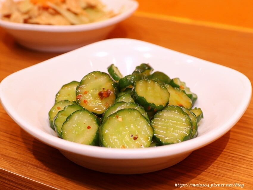 搭配店家調的醬汁及底層鋪盤的清爽小黃瓜,非常好吃