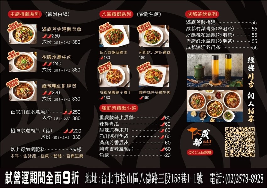 成都滿庭芳川式料理目前為試營運,預計在5月15正式開幕並推出開幕活動