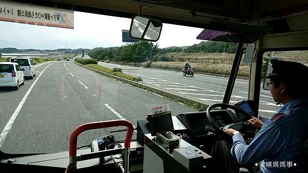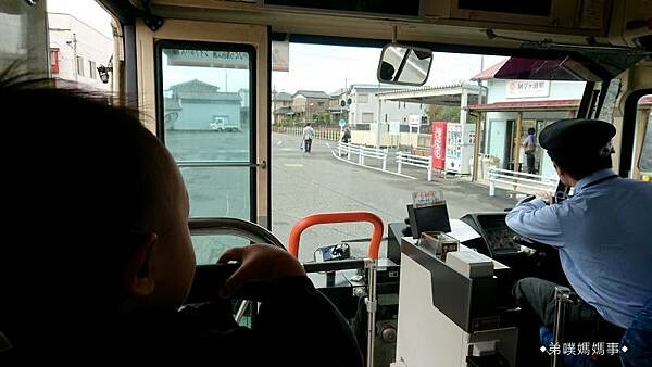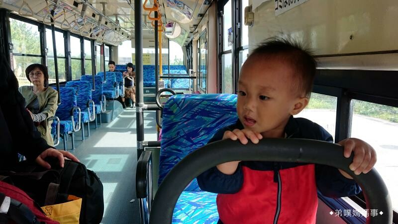 為了讓少爺能看風景,弟噗媽特選首排位置(弟噗媽一直被司機先生帽子上可愛的動漫別針給吸引)
