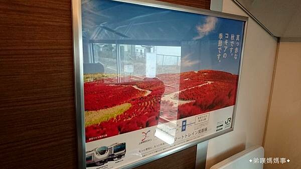 車廂也有廣告著國營海濱公園的紅通通掃帚草