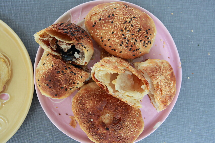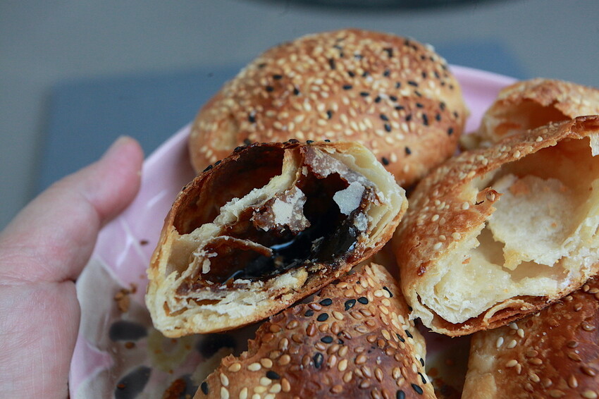 這燒餅充滿焦香超酥脆黑糖濃郁超級好吃