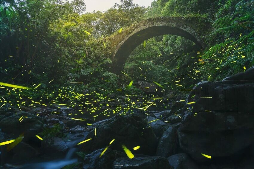 南港茶山是台灣包種茶的發源地,近年來因為茶產業凋零與有機耕作轉型,讓生態環境喘息回復,意外成為賞螢秘境。Google導航走訪南港茶葉製造示範場、桂花步道一帶,天色一暗螢火蟲就會出沒,不過景點桂花吊橋現正封閉施工無法通行,且該處入夜後幾乎無照明且階梯濕滑,要評估體力、小心行走喔。